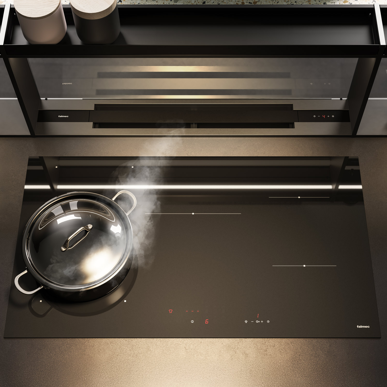 - Skjult avtrekk med åpningsbart panel