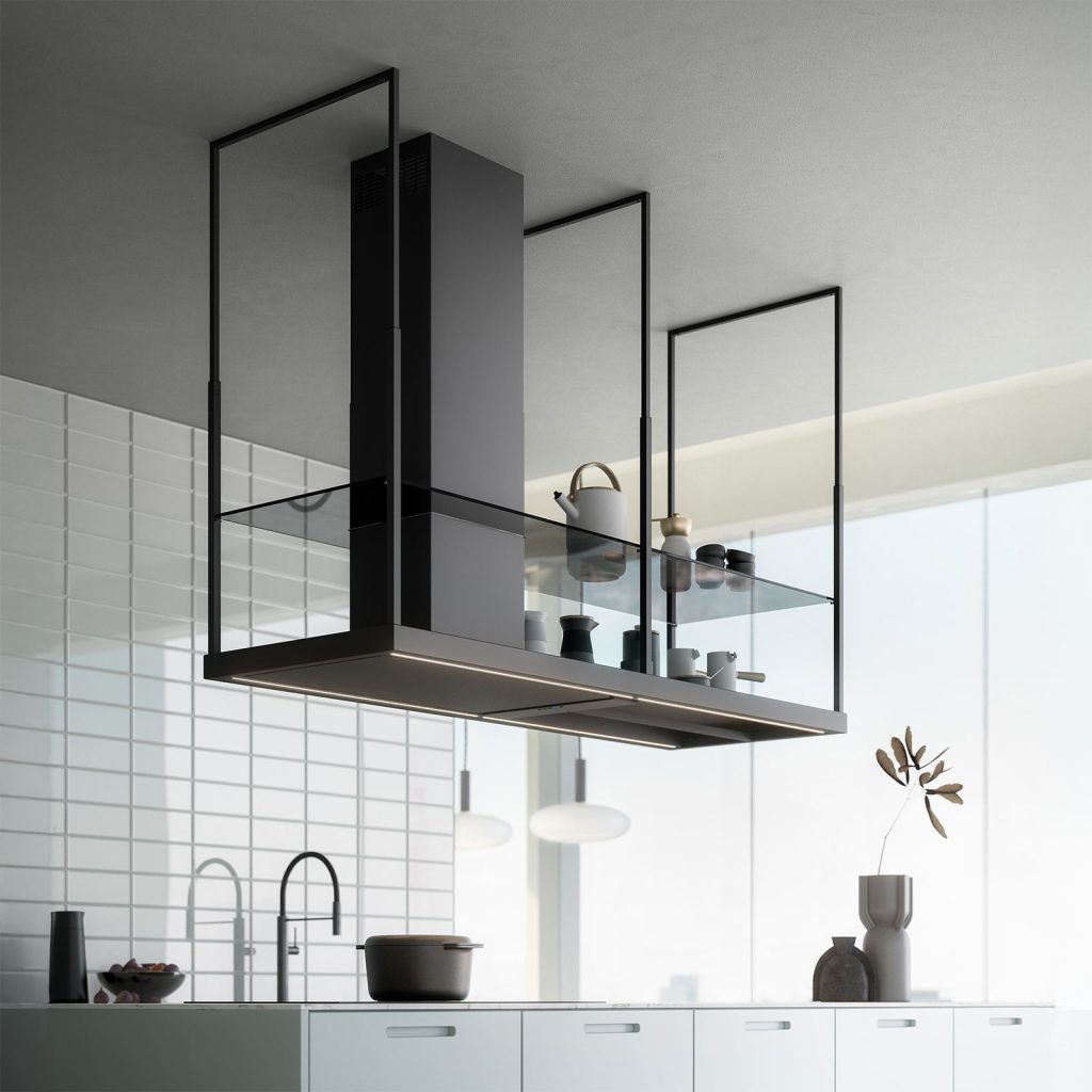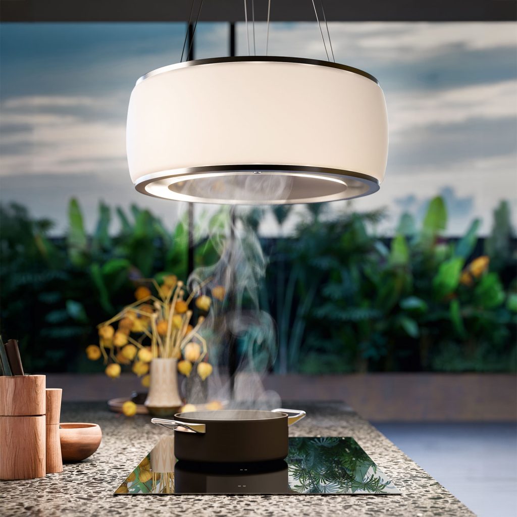 – En moderne vegghengt ventilator i herdet glass.